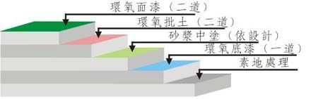 4.環氧批土:依實際需要施工數道,要求達到平整無孔洞,無批刀印及砂磨印為準;